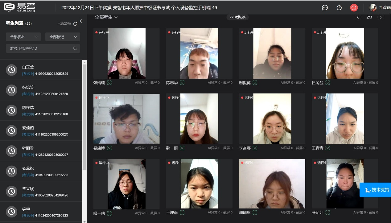 2022年12月24日,河南应用技术职业学院护理学院负责承接的教育部“1+X”失智老年人照护职业技能等级证书(中级)考试以在线考核的方式顺利完成。本次考试我校共有100名护理、老年保健与管理专业的学生参加。考试借助官方网络平台,在校领导的统一指导下、各部门的密切配合下、校内外督导员的严格监督下、监考教师的认真考评中圆满完成。