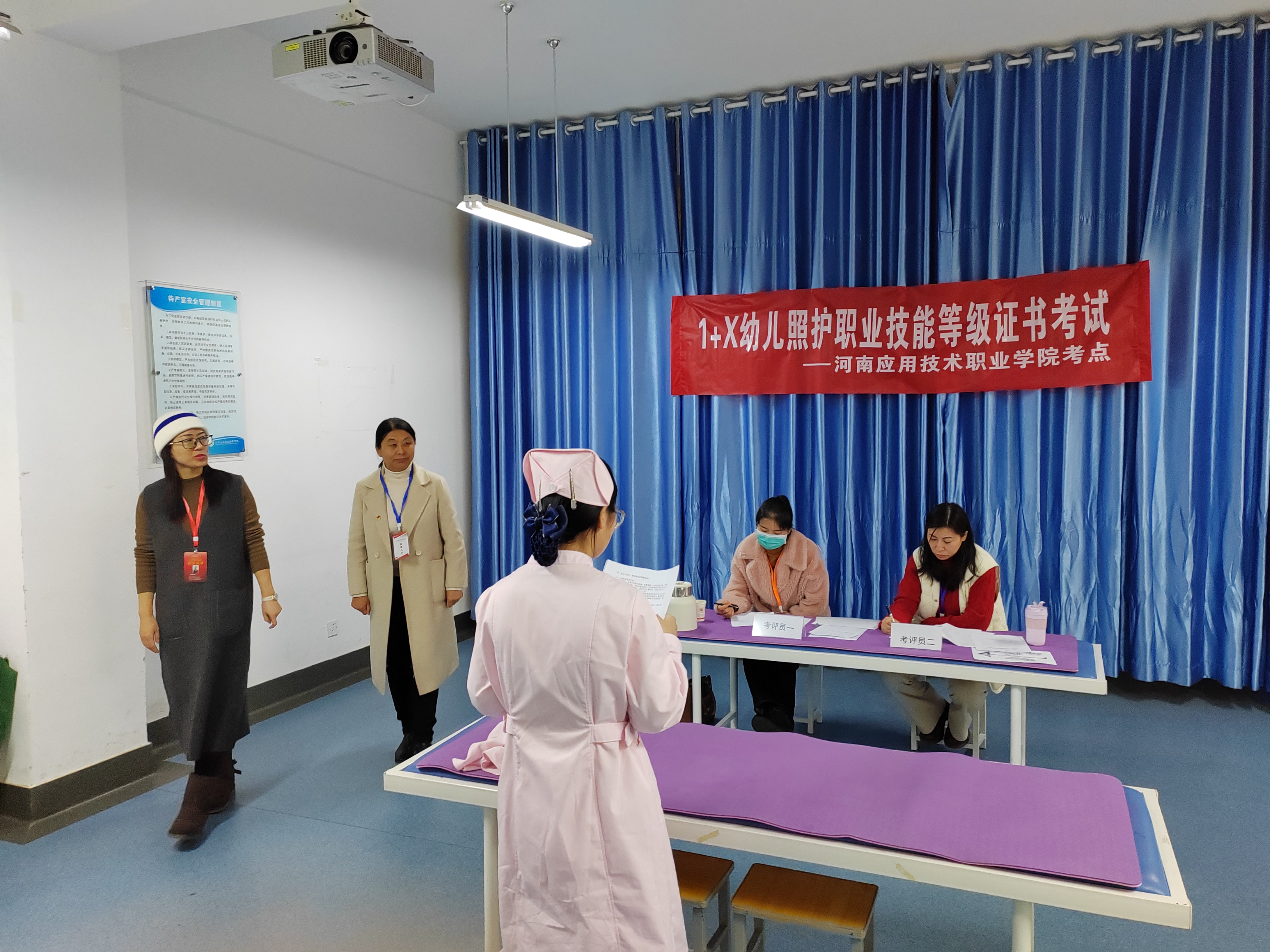 为贯彻落实《国家职业教育改革实施方案》要求,做好1+X证书制度试点工作,也为进一步探索幼儿照护等级技能人才培养模式,加大力度培养社会需要的幼儿照护人才,2023年12月10日,河南应用技术职业学院护理学院组织开展1+X幼儿照护(高级)职业技能等级证书考试。本次考试共有100名校内考生和18名社会考生参加。考前准备齐全,考务工作规范,考场组织有序。此次考试旨在提高幼儿照护人员的专业素质,突破传统的照护方式,为幼儿的健康成长保驾护航。