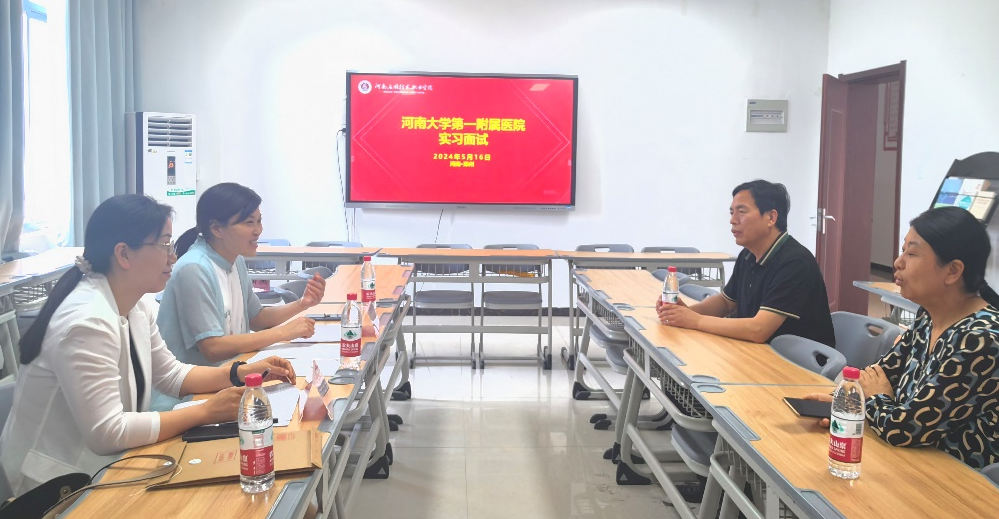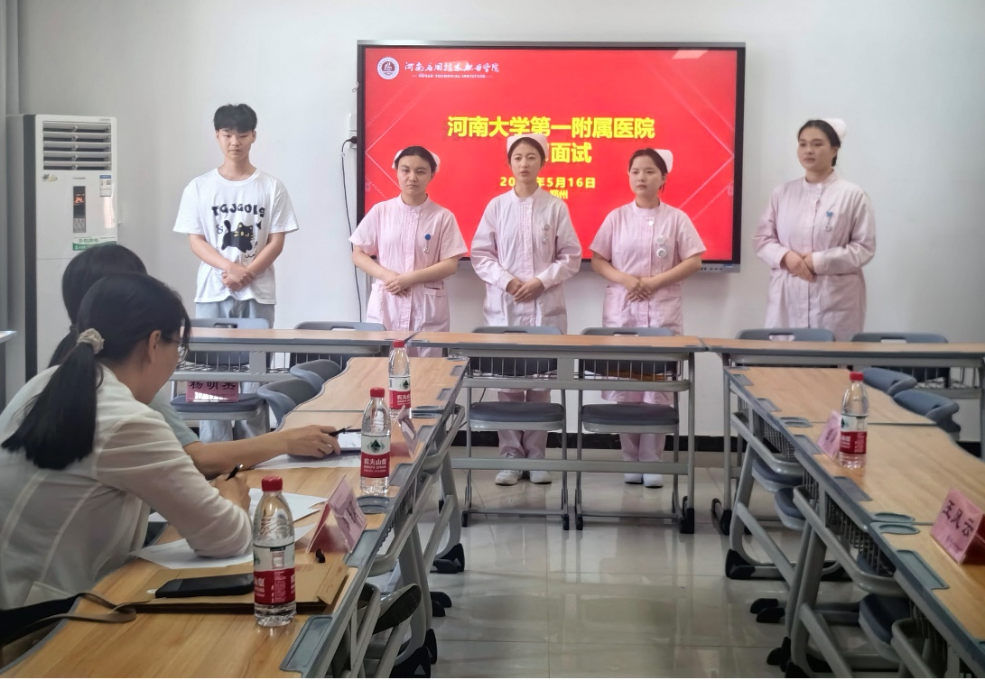 为促进高质量实习,5.16日,河南大学第一附属医院护理部关锐主任、护理部干事李晓莉老师来我校护理学院选拔2024年护理专业实习生。面试对象为2022级护理专业的学生。