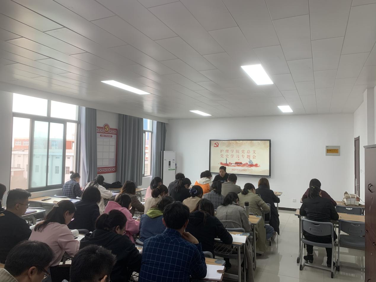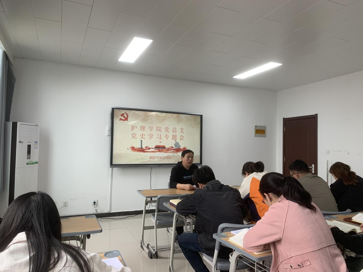 根据学校党史学习教育实施方案,2021年4月13日下午,护理学院党总支组织全体教师在A515党员活动室召开党史学习研讨会,集中学习讨论《习近平在党史学习教育动员大会上的讲话》以及《论中国共产党历史—习近平》部分内容,会议由护理学院党总支书记杨明杰主持。