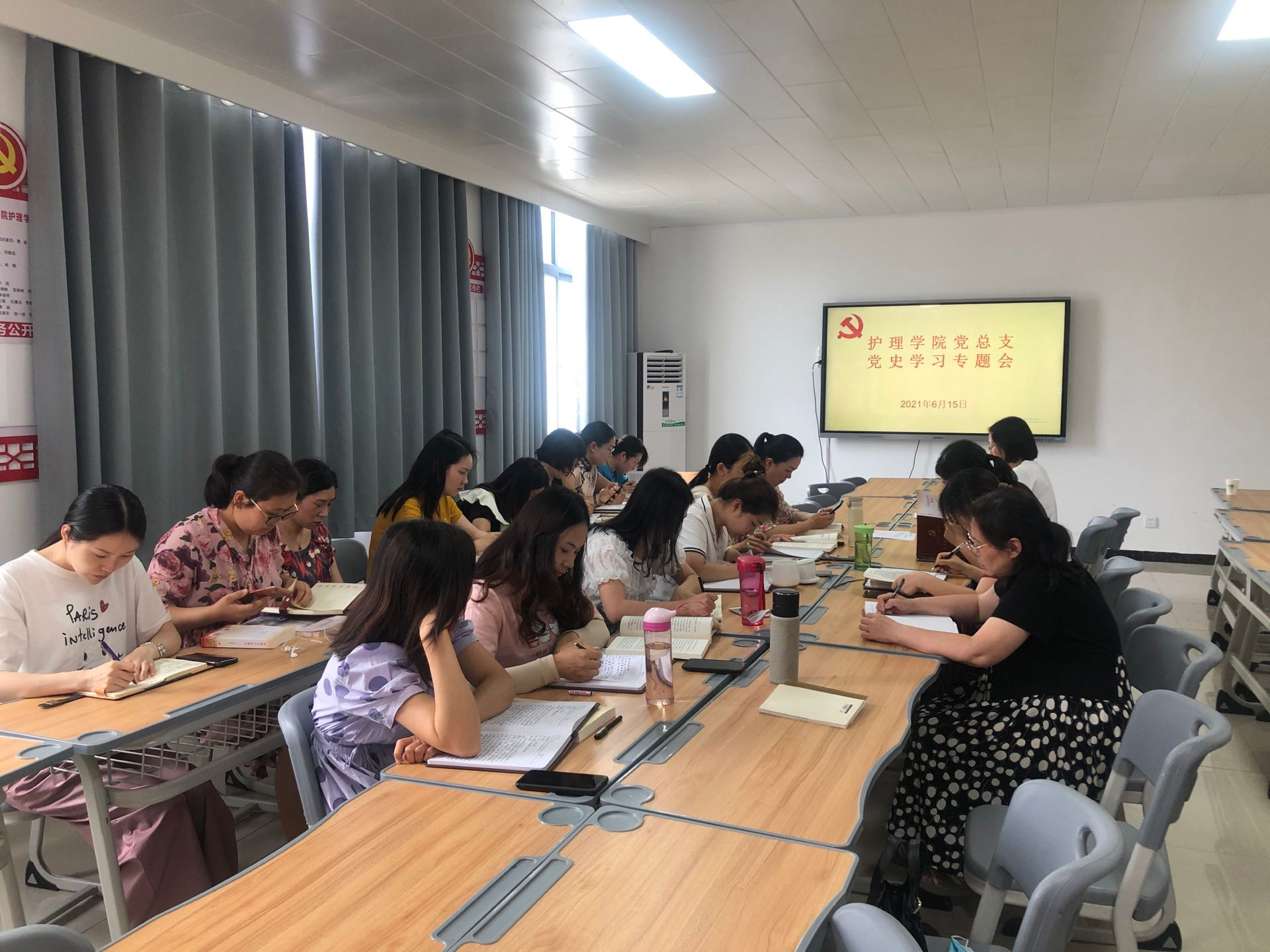 2021年6月16日下午,护理学院党总支在A515组织召开党史学习专题会议,会议由党总支宣传委员陈永惠主持,主要学习习近平总书记《用好红色资源、传承好红色基因,把红色江山世世代代传下去》重要文章(《求是》杂志2021第10期)和《中国共产党简史》中部分内容。