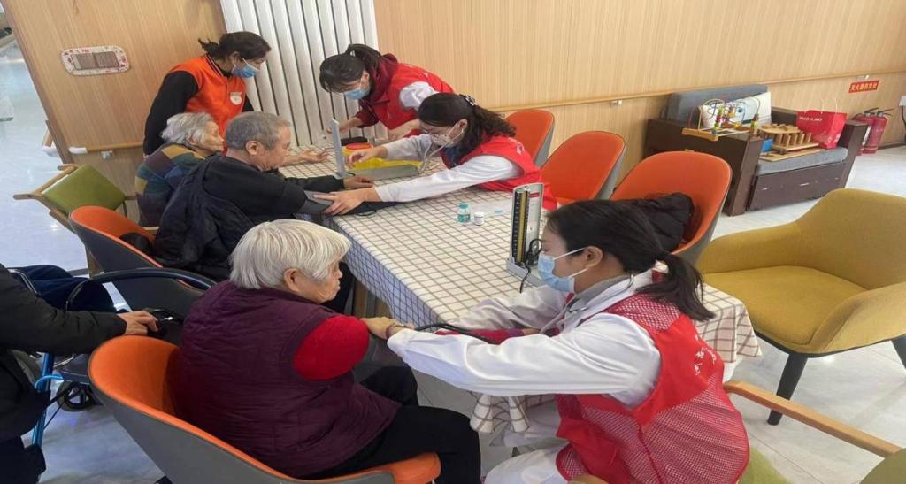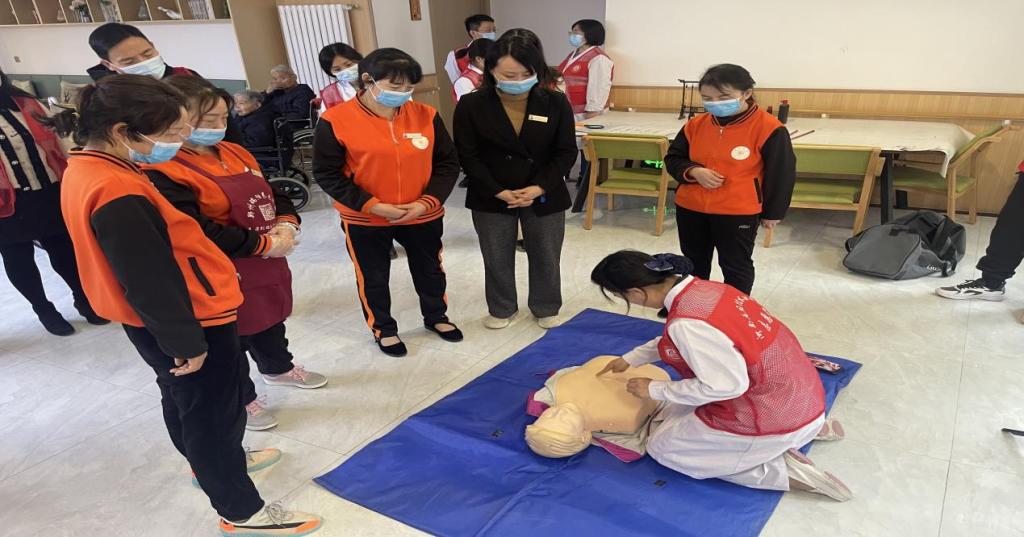 活动现场,护理学院老师发挥专业优势,关心询问老人们的身体状况,为他们讲解春季常见疾病的防治及相关医疗卫生知识,现场解答咨询的健康问题,同时,为在场的每一位老人进行了血压和血糖的检测,并了解他们近期的睡眠、饮食等情况,结合每个人的健康状况进行针对性的健康指导,提出意见和建议,帮助他们提高健康意识。随后,为养老院的护工普及心搏骤停后紧急救援措施——心肺复苏技术,通过演示学习及亲身体验,养老院的工作人员切身感受到了心肺复苏在实际生活中的实用性和重要性,懂得了自救与互救的重要性,并表示在以后的养老服务工作中将学以致用。