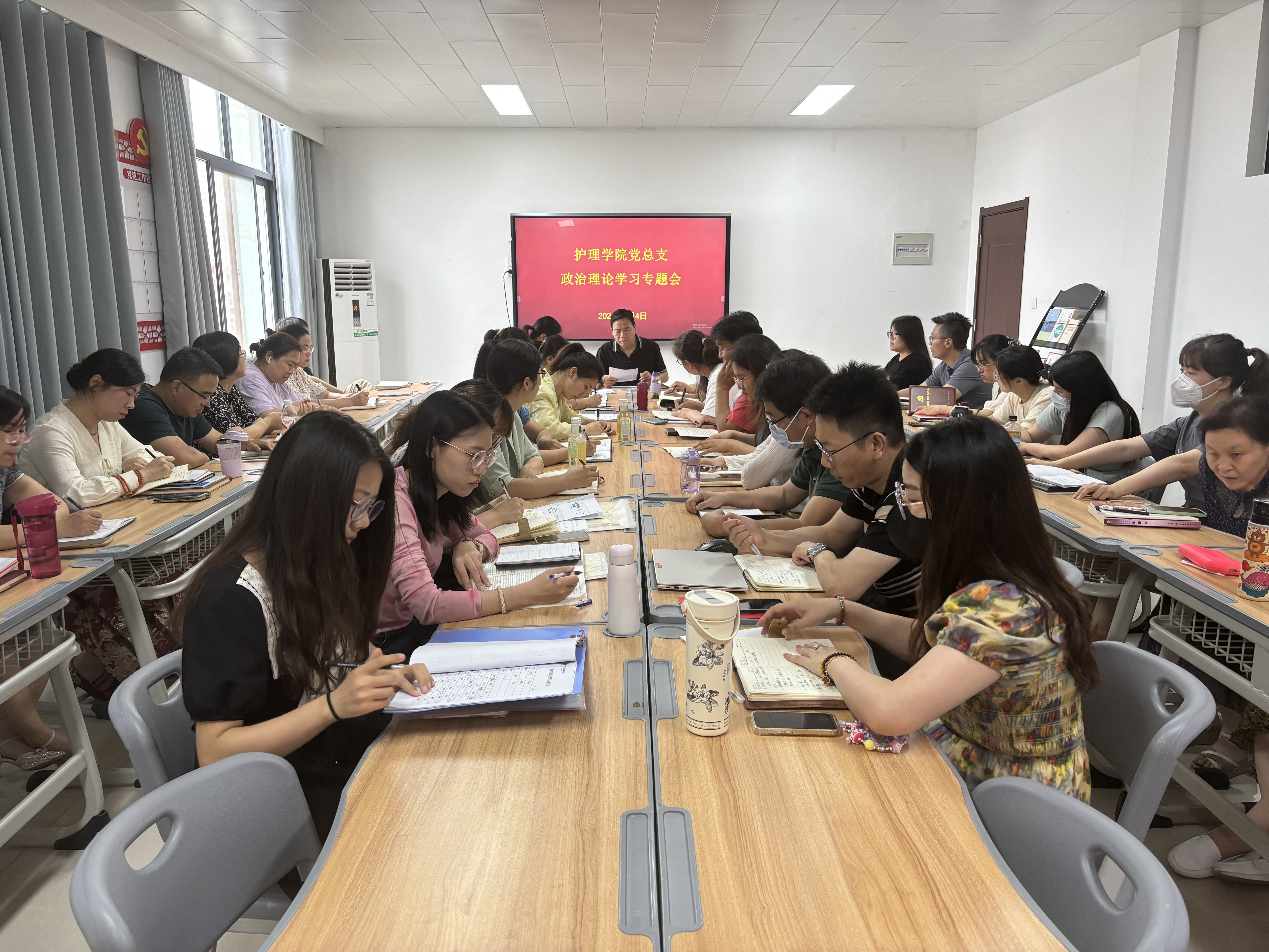 根据学校有关安排,2024年6月4日,护理学院党总支在A515党员活动室开展政治理论专题学习,会议由护理学院党总支书记杨明杰主持,全体教职工参加。