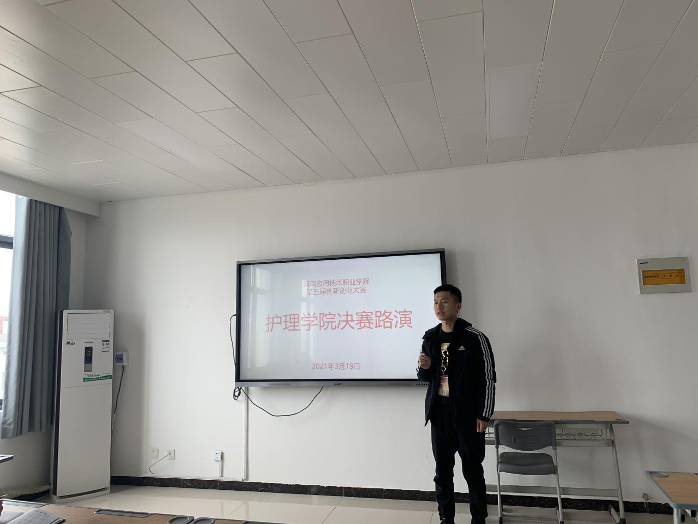 为落实国家、省、市关于大学生就业创业的有关部署,营造大学生尊重创业、鼓励创业、积极创业的良好氛围,培养大学生创新创业意识和提升创业能力,护理学院于2021年1月28日部署关于“河南应用技术职业学院第五届大学生创新创业大赛”的有关事项,经过层层选拔,于2021年3月19日在A楼515教室举办“河南应用技术职业学院第五届大学生创新创业大赛-护理学院决赛路演”。
