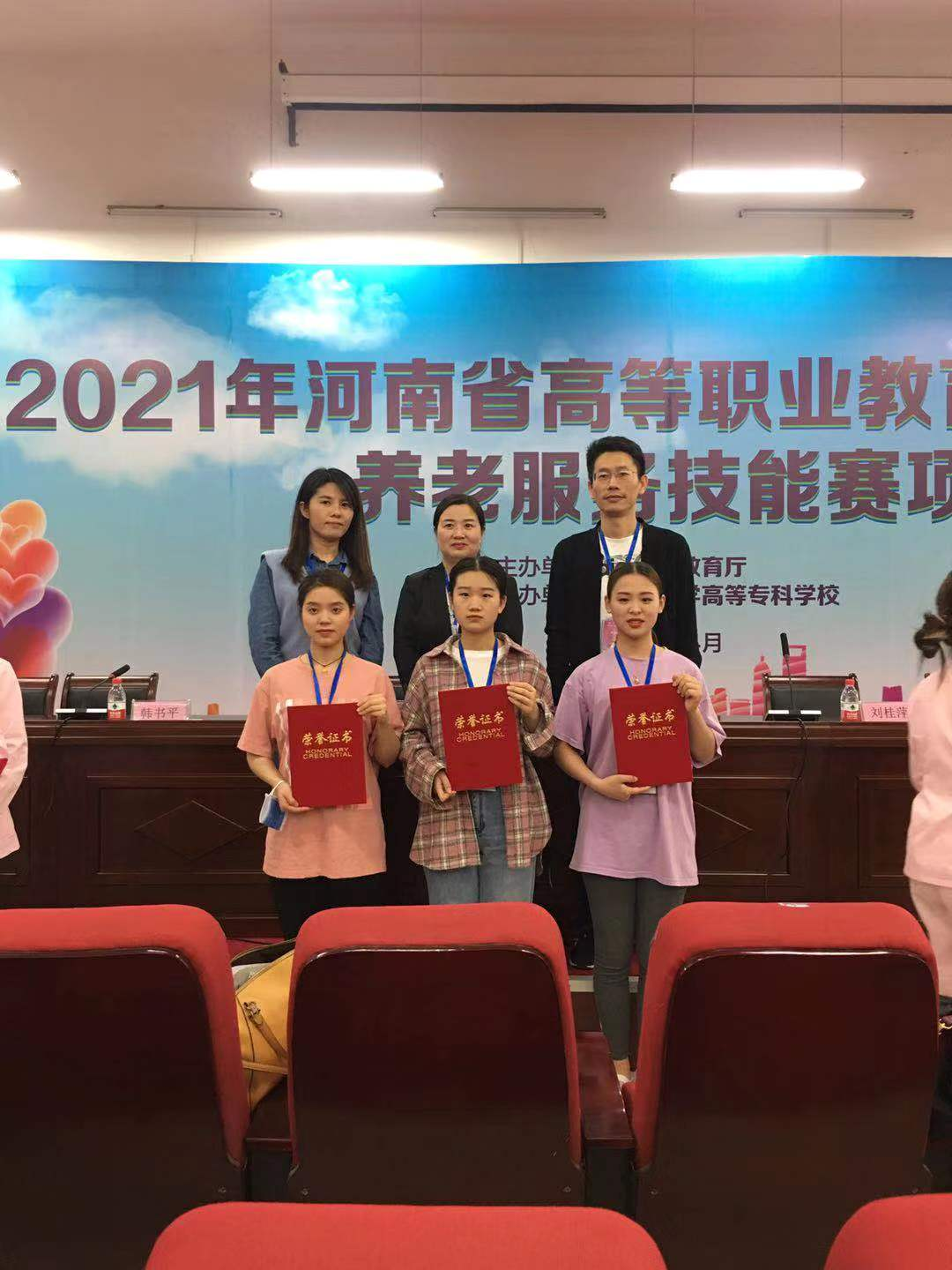 4月28—30日,2021年河南省高等职业教育技能大赛养老服务技能大赛在漯河举行,我校在本次大赛中荣获佳绩,护理学院2019级护理专业、老年保健与管理专业学生齐慧珠、张文慧、卢钰莹分别获二等奖3项;柳超、李悦临、宋文颖三位老师获优秀指导教师奖。