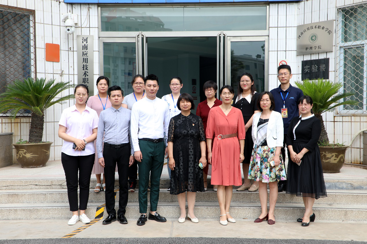 为响应国家关于加强学校和企业合作的号召,充分发挥学校与企业双方优势及高等教育为社会、为企业服务的功能,更好的为社会、为企业培养高素质、高技能的应用型人才,同时也为学生实习、实训、就业提供更多空间,在双方共同努力下,6月15日上午,河南应用技术职业学院和河南爱馨养老服务集团股份有限公司校企合作签约仪式在行政楼515会议室召开。河南爱馨养老服务集团股份有限公司集团副总经理卢以轩,教育部主任马可,行政秘书赵亚楠,品牌策划裴正阳以及河南应用技术职业学院副院长赵玉奇,河南应用技术职业学院副院长陈君丽,教务处、招生就业处相关领导、护理学院院长王风云、书记徐娟、副院长陈永惠及教师代表出席本次签约仪式。