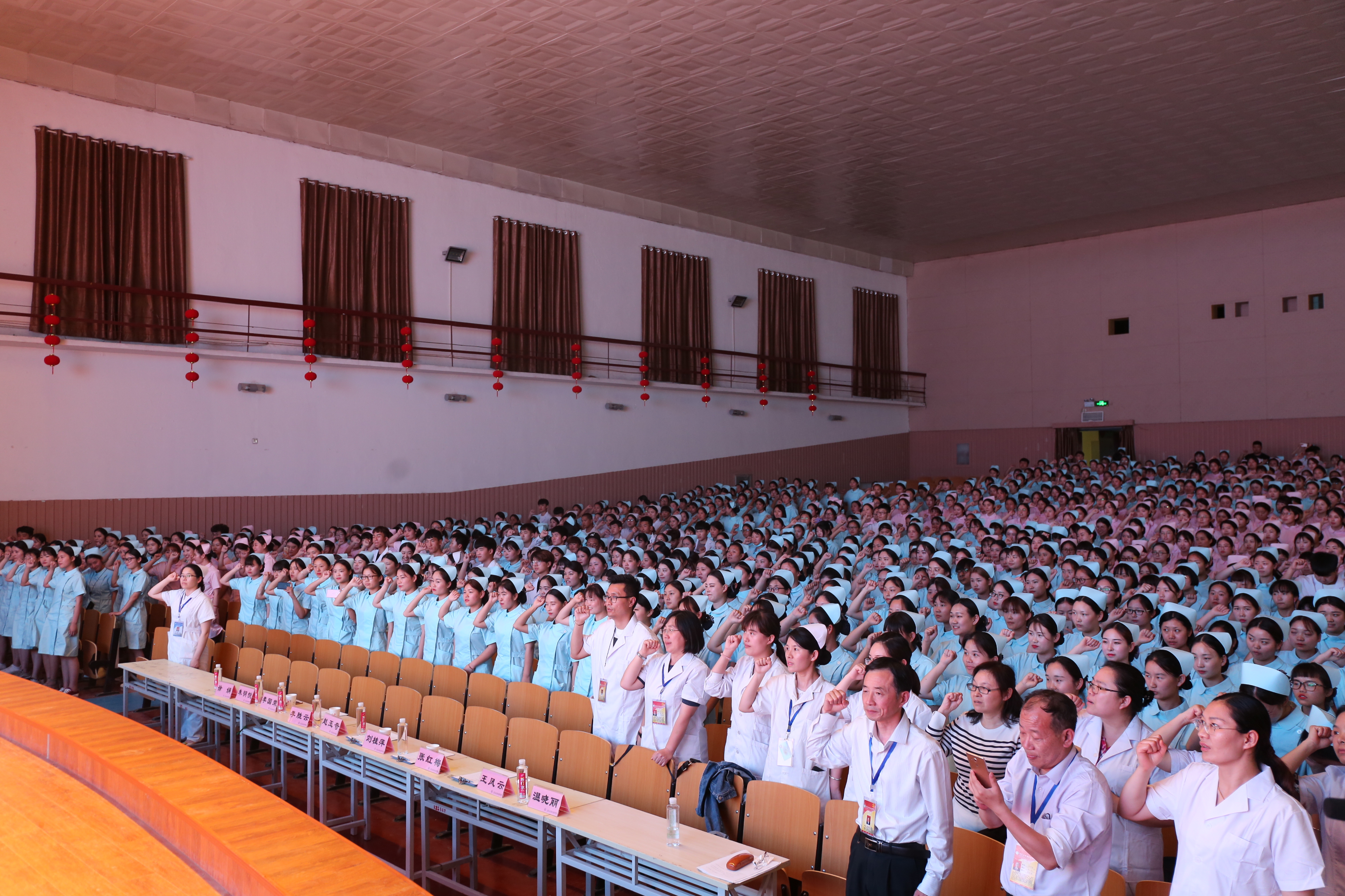 传光授帽仪式在悠扬的《护士赞歌》中开始。32名护士生代表,面带微笑,半跪在医护前辈面前,双手接过象征着医护精神的红烛,接受为自己授戴圣洁的燕帽,聆听前辈赠言;全场1000多名学生王风云院长的带领下,在烛光下庄严宣誓:“我志愿献身护理事业,热爱护理专业,坚守救死扶伤的信念,尊重病人的权利,履行护士的职责……”