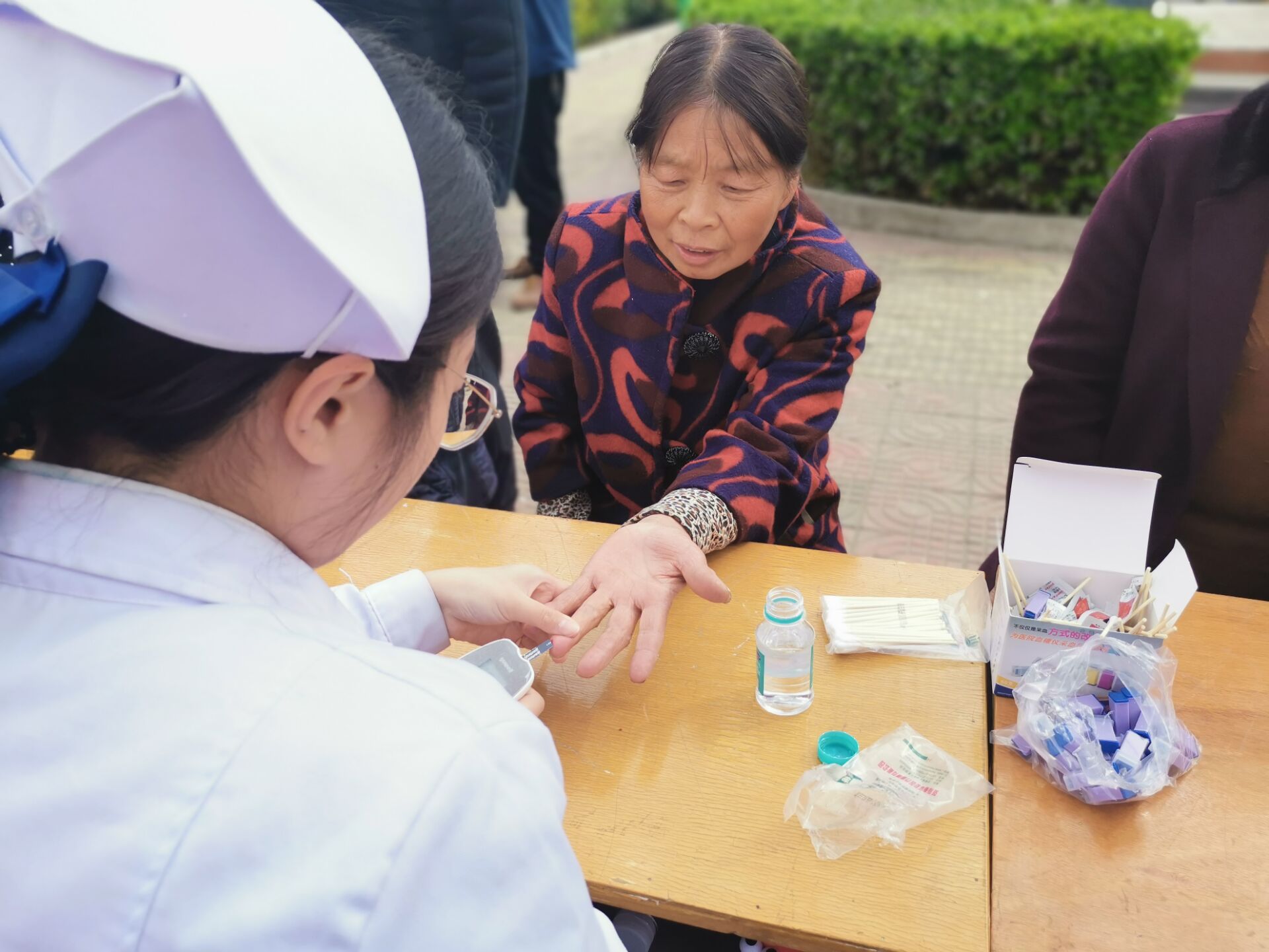 此次义诊活动向当地居民提供免费量血压、测血糖等服务,前来测量的居民在摊位前排起了长队。活动现场,志愿者还向居民普及健康知识,耐心细致地讲解慢病护理、健康保健知识,指导老年人饮食和日常活动。每一位志愿者都本着对患者负责的态度,秉持“爱心、耐心、细心、责任心”为居民服务。志愿者团队在这温暖的春日里开展义诊宣教活动,用实际行动唤起居民对健康的保护意识,建立自我健康行为。尤其是预防优于治疗,希望更多人重视并参与进来,通过共同努力,推动全民关注身体健康,提升全民身体健康素养。