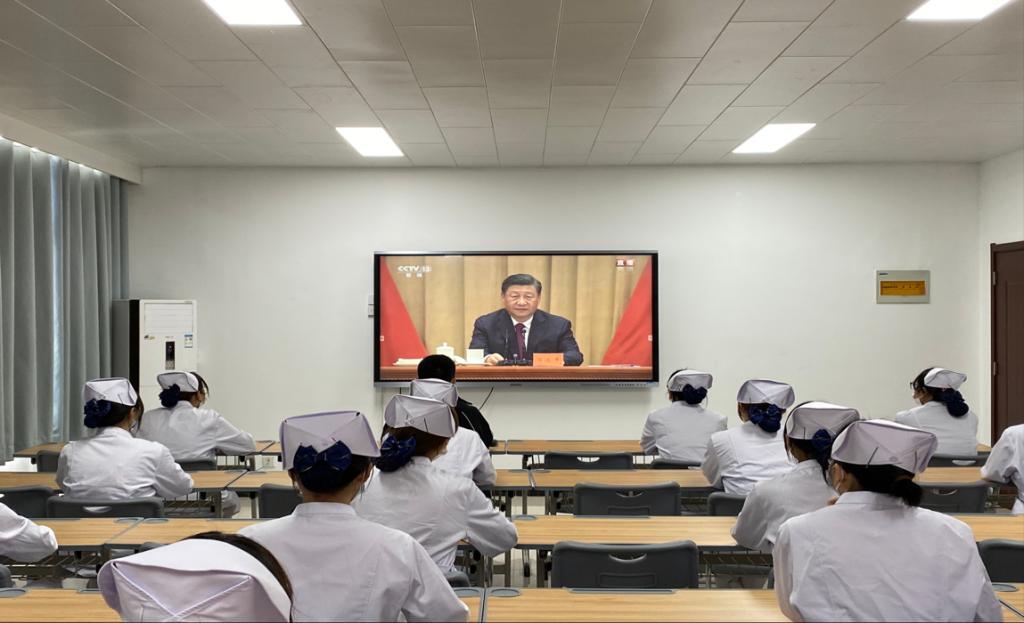 为庆祝中国共产主义青年团成立100周年,中共中央于5月10日上午10:00在北京人民大会堂隆重举行大会。中共中央总书记、国家主席、中央军委主席习近平出席大会并发表重要讲话。护理学院党总支组织教师、学生代表同步收看直播。