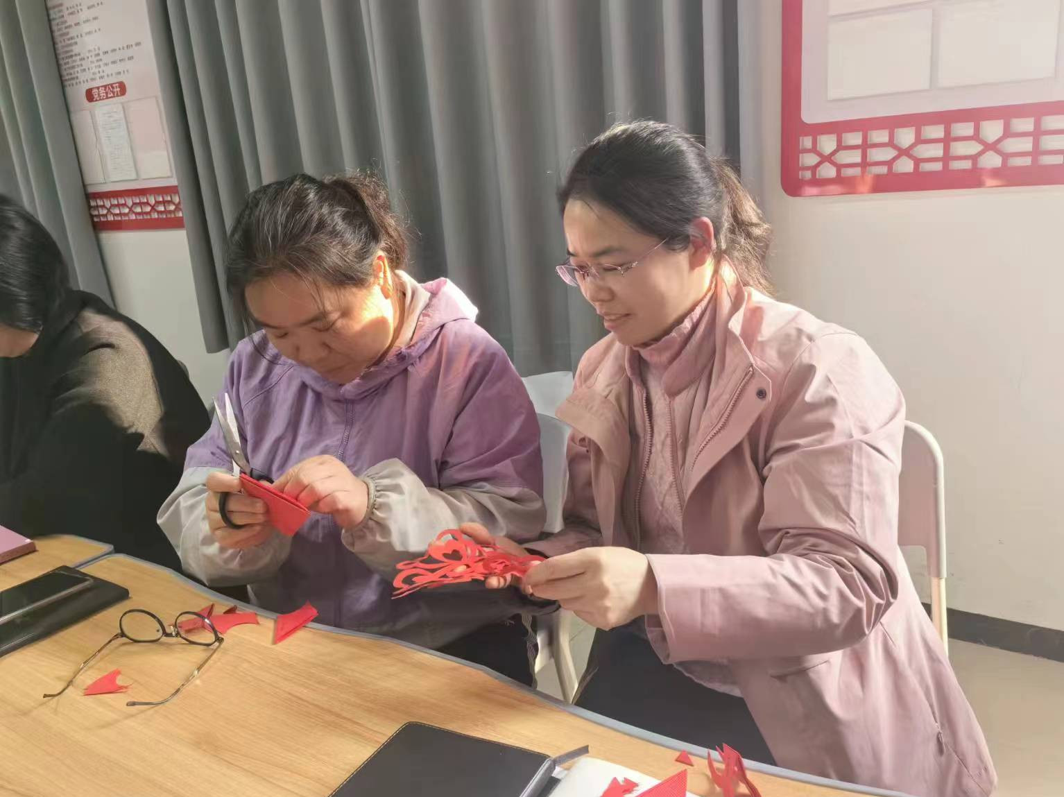 “剪采赠相亲,银钗缀凤真。叶逐金刀出,花随玉指新。”剪纸作为一种历史悠久的民间艺术,至今已经有一千多年的历史。因其独特的表现形式和丰富的文化内涵,被列为世界文化遗产。活动中,全体教职工积极参与,纷纷拿起剪刀,细心地剪裁着纸张,一幅幅精美的剪纸作品逐渐展现在大家面前,洋溢的笑容与精美的作品展现出她们对生活的热爱和对美的向往,同时在制作的过程中感受着中国传统文化的魅力。