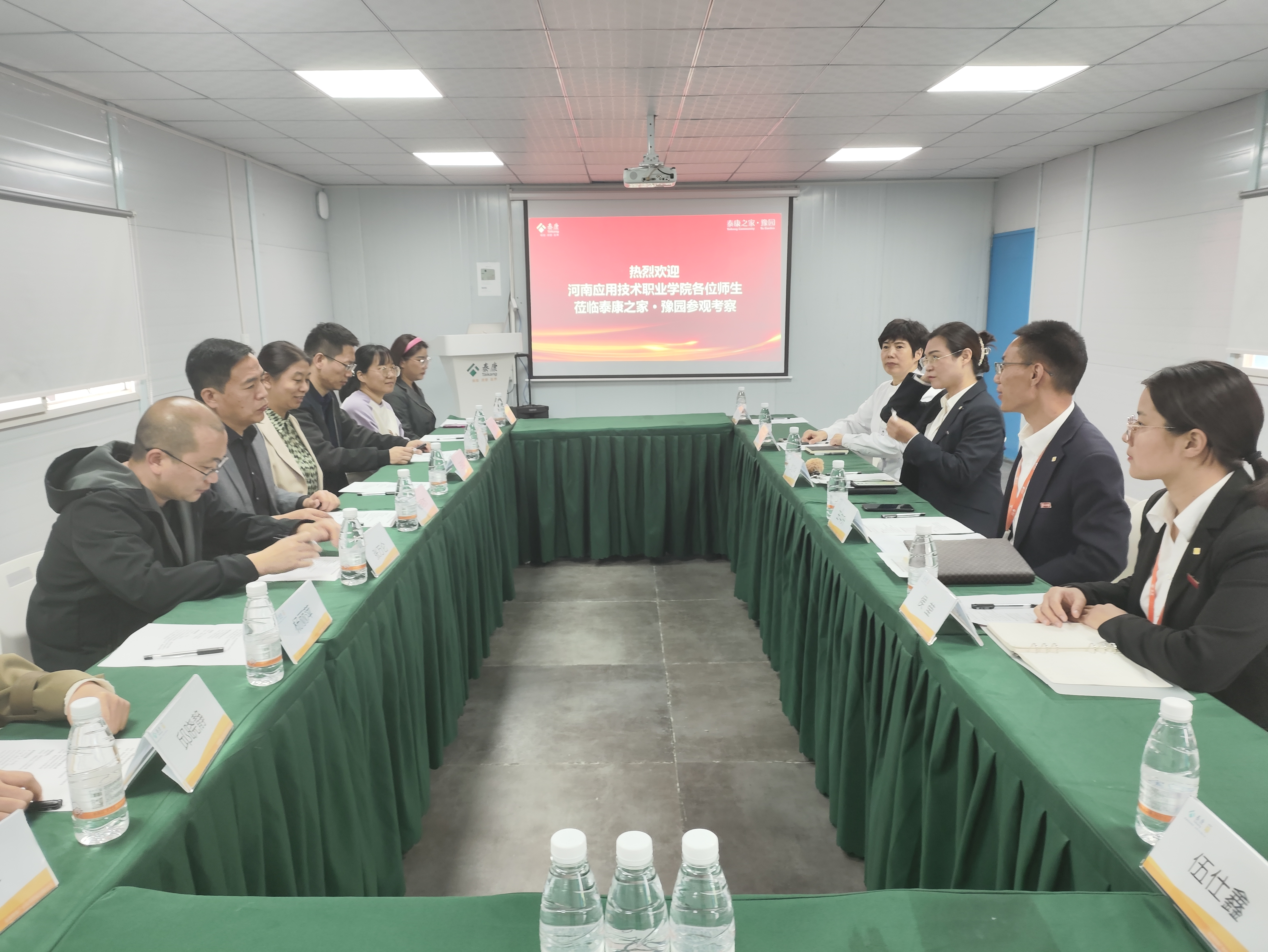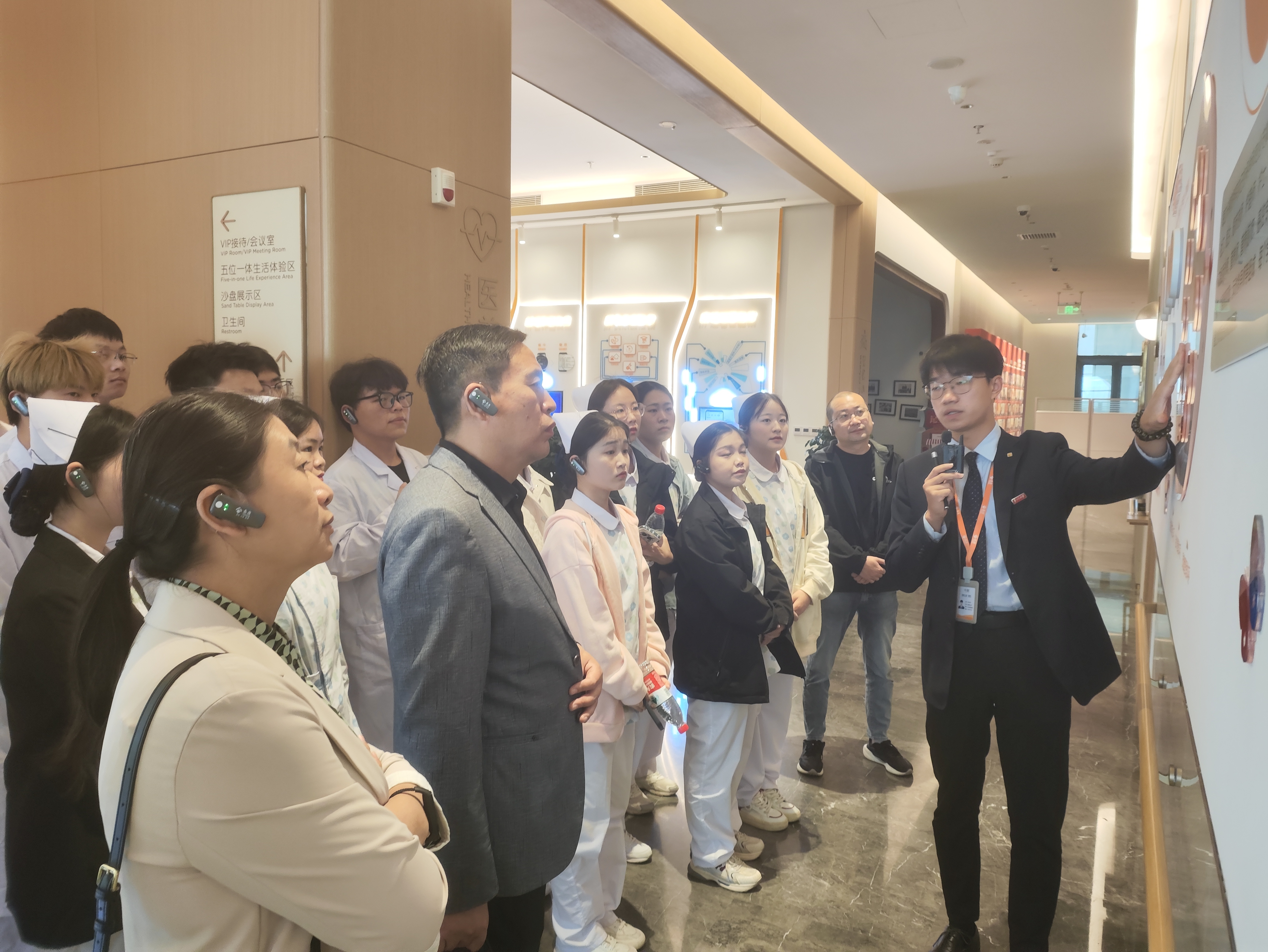 2023年11月3日上午河南应用技术职业学院护理学院党总支书记杨明杰、院长王风云、校企合作与就业处副处长张万仑等一行带22级老年保健与管理专业全体学生赴中牟市泰康之家豫园访企拓岗。